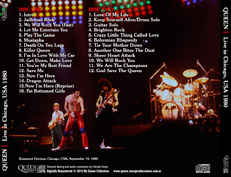 DISC 2: 1. Love Of My Life 2. Keep Yourself Alive/Drum Solo 3. Guitar Solo 4. Brighton Rock 5. Crazy Little Thing Called Love 6. Bohemian Rhapsody 7. Tie Your Mother Down 8. Another One Bites The Dust 9. Sheer Heart Attack 10. We Will Rock You 11. We Are The Champions 12. God Save The Queen