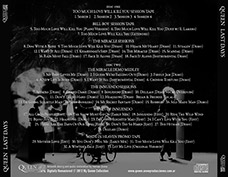 DISC TWO:THE MIRACLE DEMO MEDLEY1. My Baby Loves Me (Demo) 2. I Guess We're Falling Out (Demo) 3. Fiddly Jam (Demo) 4. A New Life Is Born (Demo) 5. I Want It All (Instrumental Demo) 6. Chinese Torture (Demo) THE INNUENDO SESSIONS7. Affairs (Demo) 8. Grand Dame (Demo) 9. Innuendo (Demo) 10. Delilah (Demo Vocal Overdubs) 11. Don't Try So Hard (Demo) 12. Headlong (Demo - Brian & Freddie Vocals) 13. I'm Going Slightly Mad (Totally Bonkers) 14. My Secret Fantasy (Demo) 15. Robbery 16. Self Made Man (Demo) HINTS OF INNUENDO17. All God's People (Edit) 18. The Show Must Go On (Early Mix) 19. Innuendo (Edit) 20. Ride The Wild Wind 21. Bijou (Edit) 22. Headlong (Demo) 23. I'm Going Slightly Mad (Edit) 24. I Can't Live With You (Edit) 5. These Are The Days Of Our Lives (Edit) 26. Don't Try So Hard (Edit) 27. The Hitman (Demo) MADE IN HEAVEN PROMO TAPE 29. Mother Love (Edit) 30. You Don’t Fool Me (Early Mix) 31. Too Much Love Will Kill You (Edit) 32. A Winter's Tale (Edit) 33. Let Me Live (Original Version) |