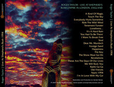 A Kind Of Magic Touch The Sky Everybody Hurts Sometime Ride The Wild Wind Tenement Funster Loneliness... It's A Hard Rain 'You Had To Be There' I Want To Break Free Soul Dear Mr. Murdoch Foreign Sand Happiness The Key The Show Must Go On Revelations These Are The Days Of Our Lives We Will Rock You Radio Ga Ga Old Friends Nazis 1994 I’m In Love With My Car (Cuts off) |